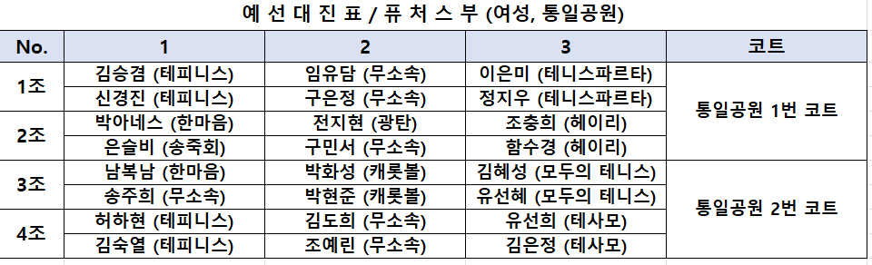 문산한마음대회 대진표 안내 - 퓨쳐스부(여)
