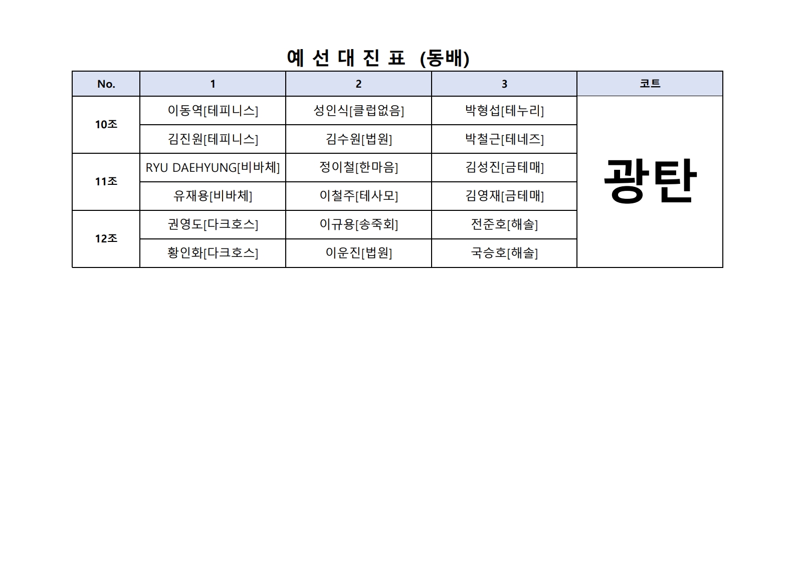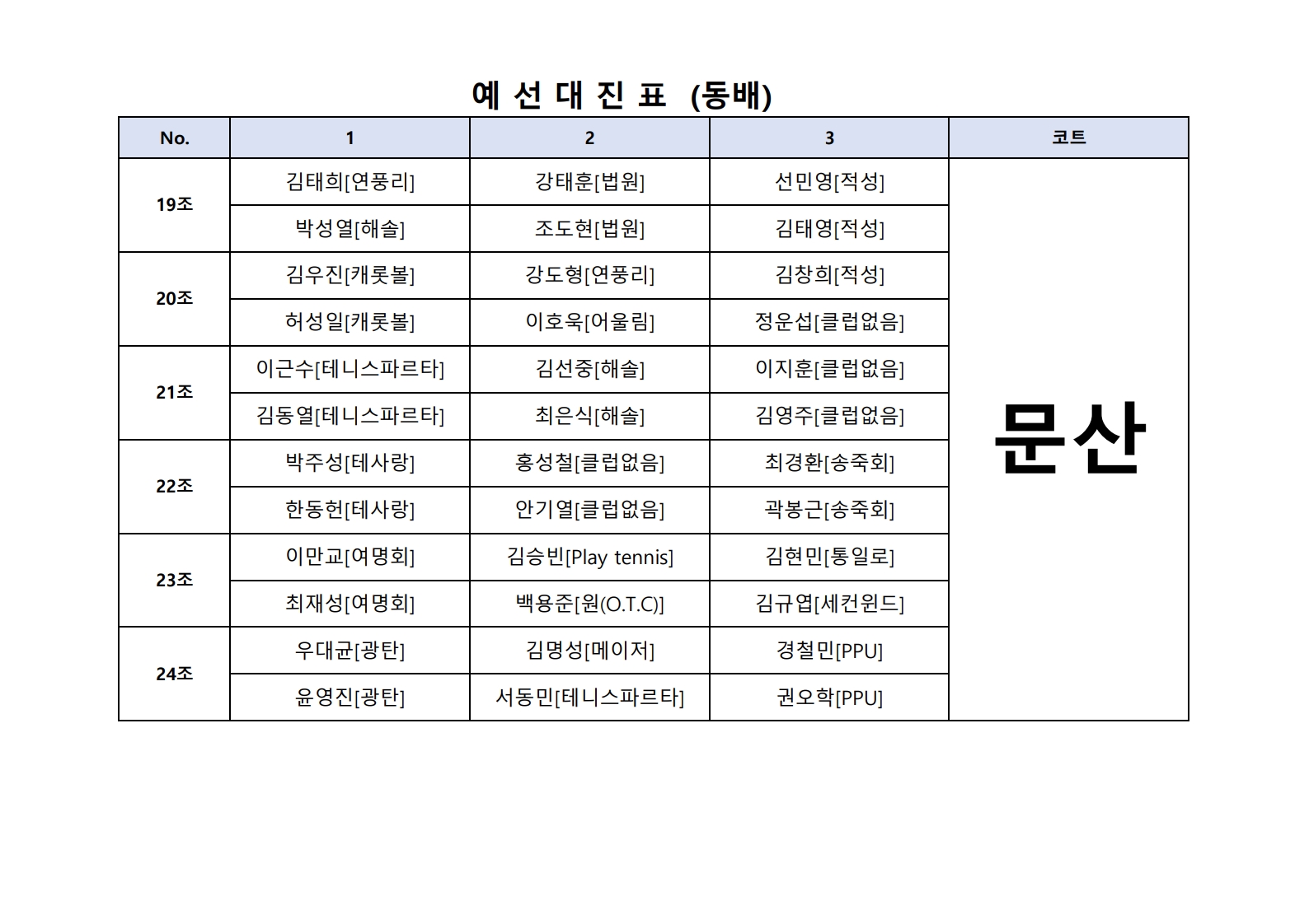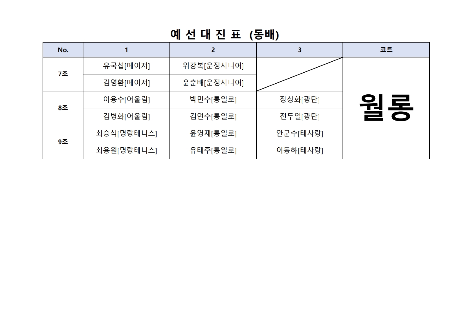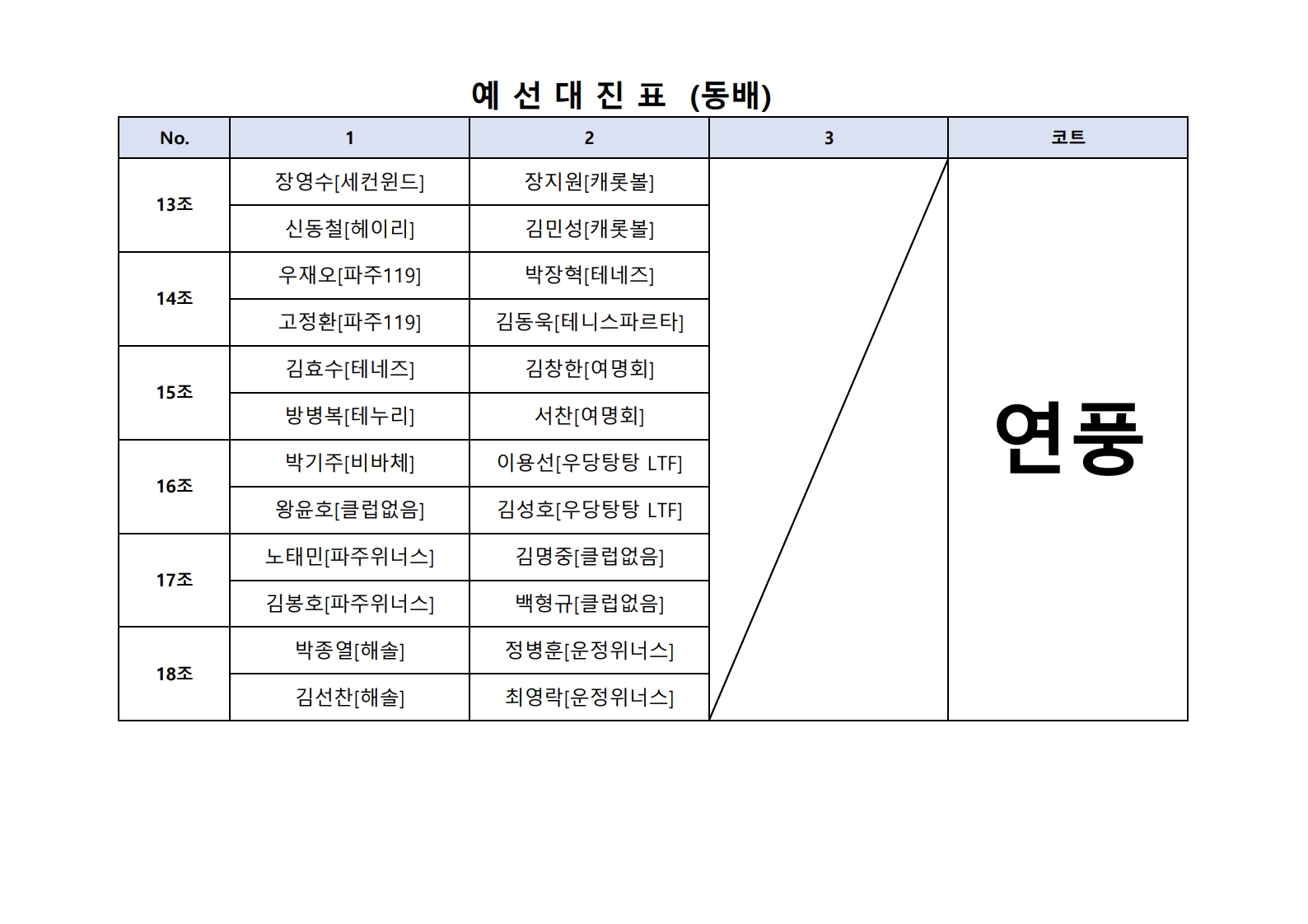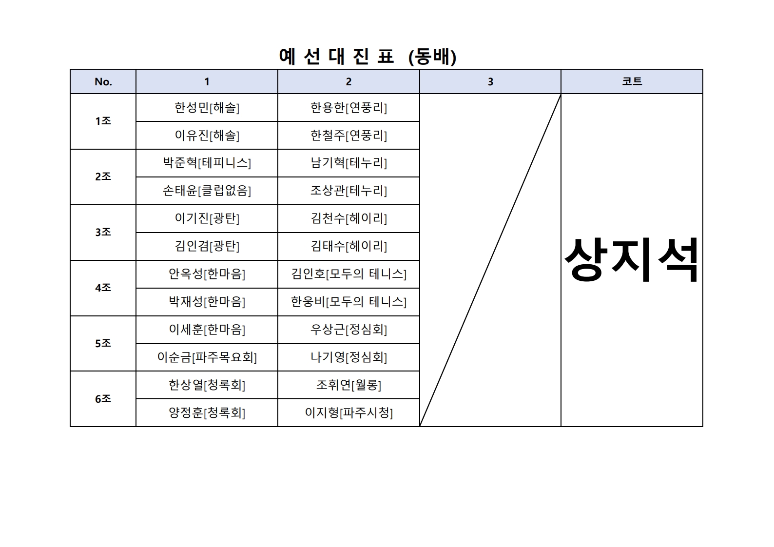 (동배부) 2025 파주시테니스협회장배 테니스대회 예선 대진표