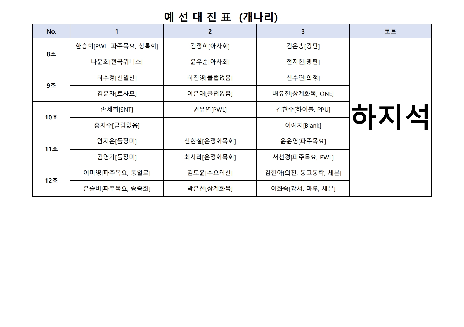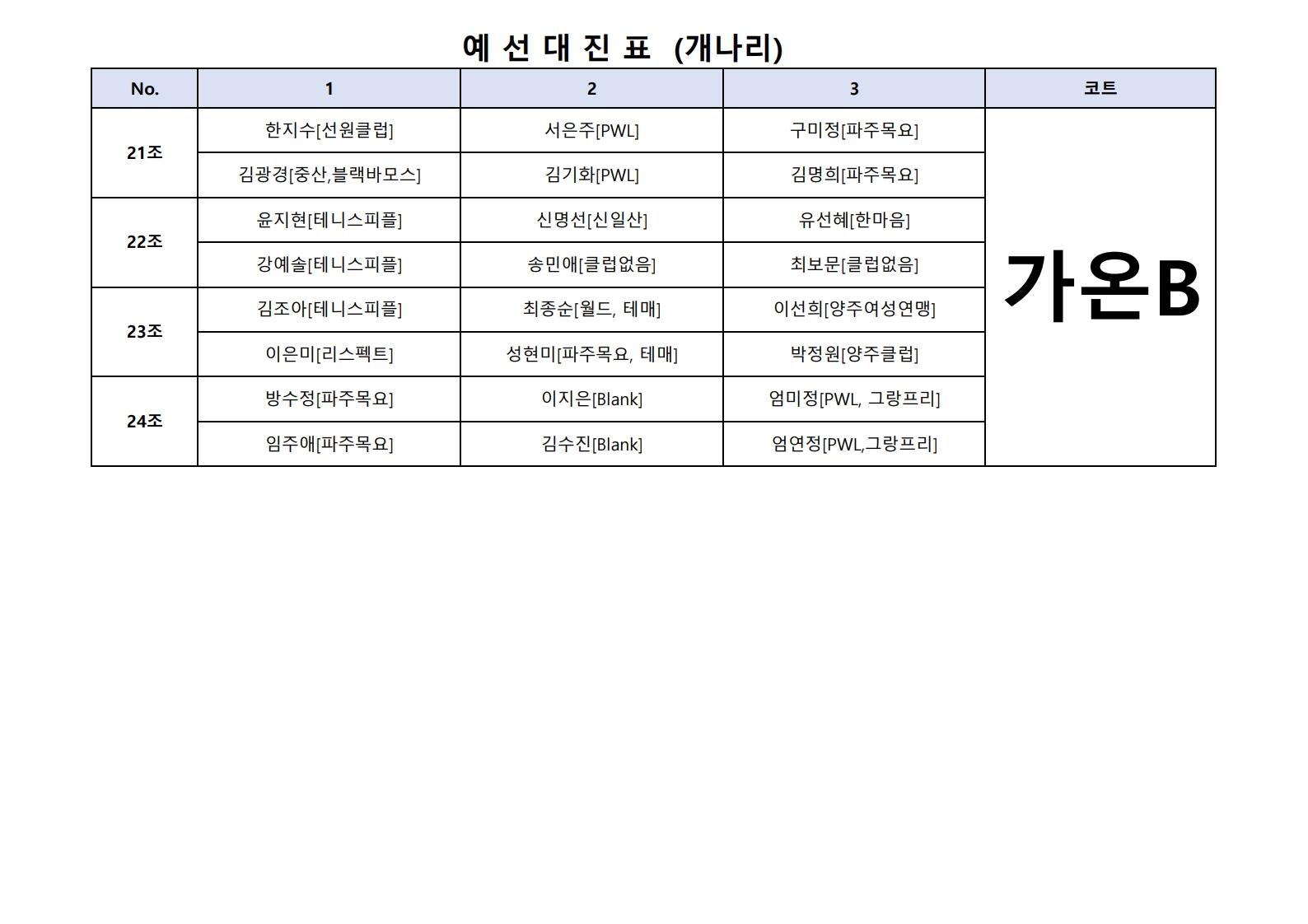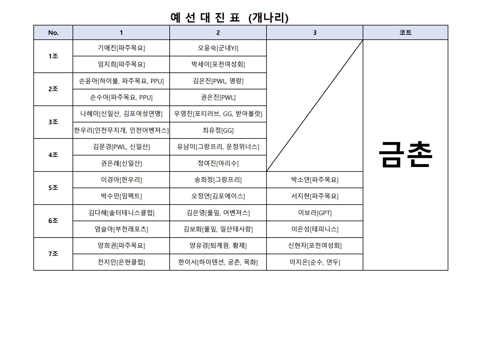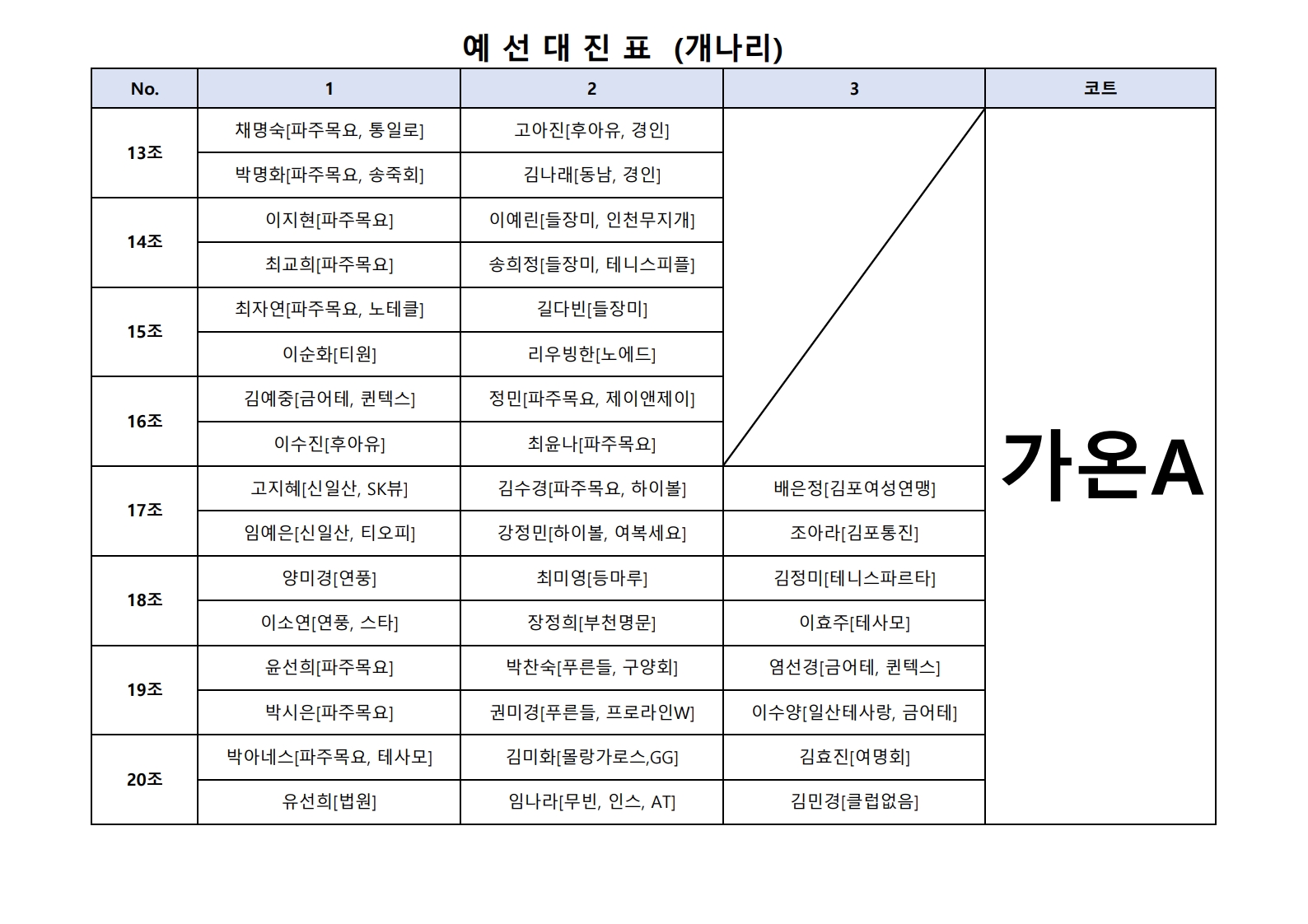 (개나리부) 2025 파주시테니스협회장배 테니스대회 예선 대진표