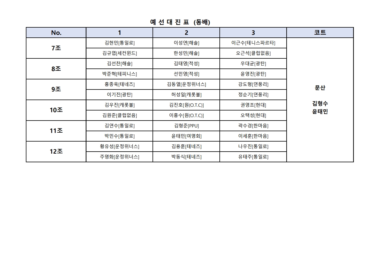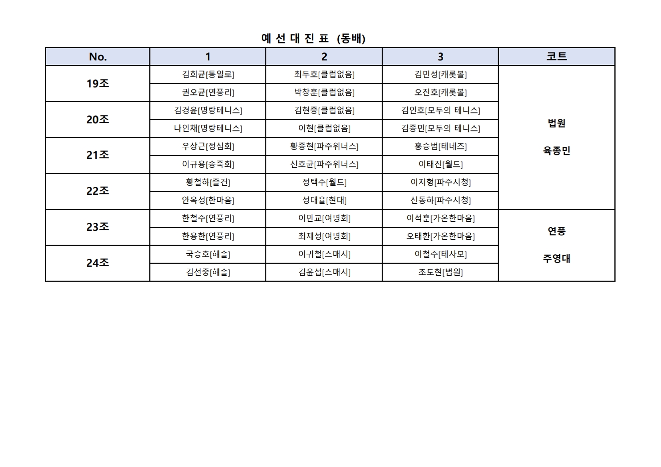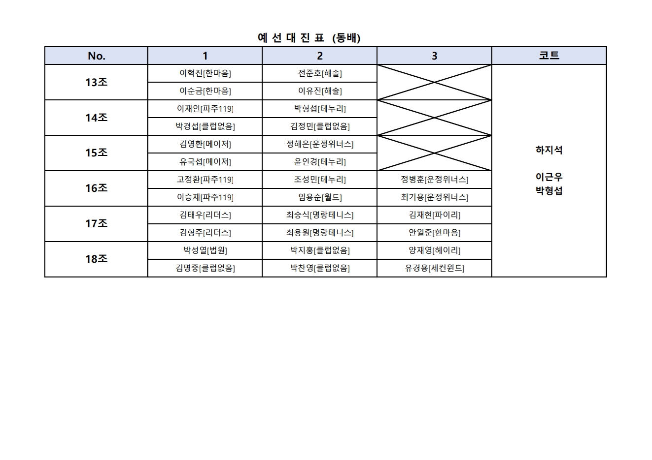 (동배) 2026 파주시테니스협회 챌린지 1차 대회 대진표