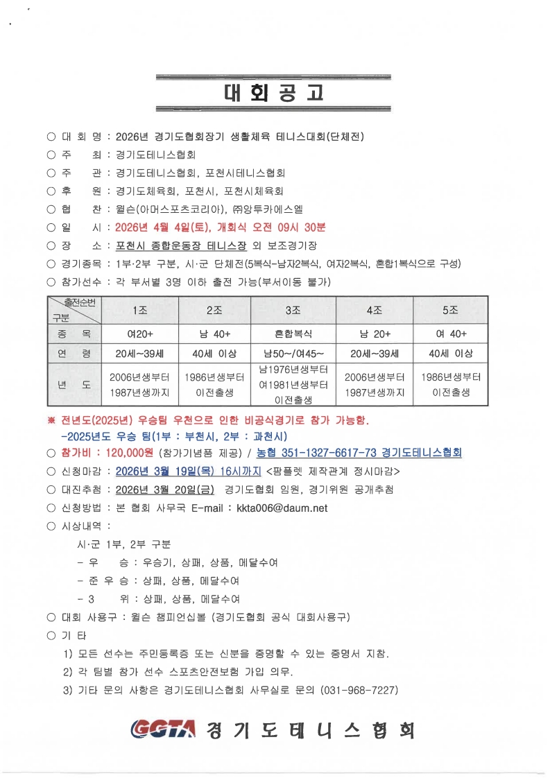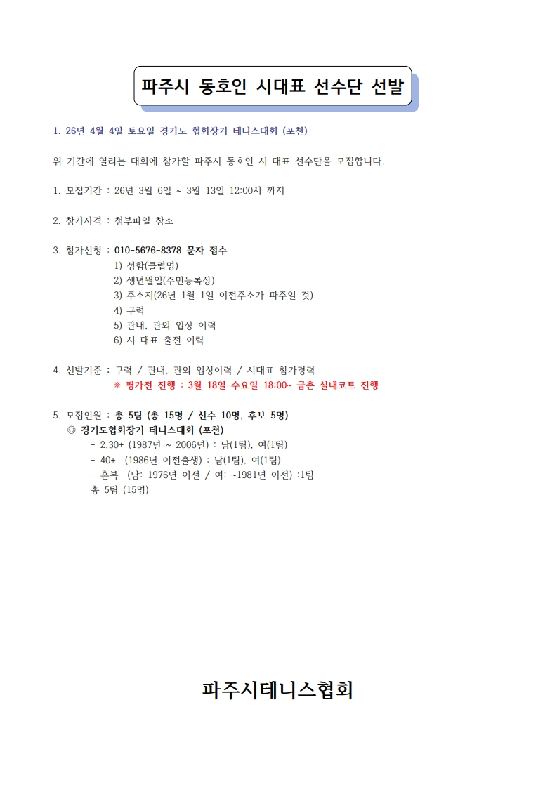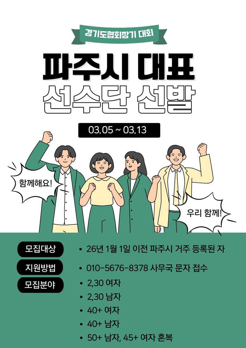[26년 경기도협회장기 대회] 파주시대표 선수단 선발