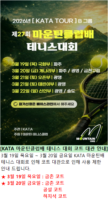 [KATA 마운틴클럽배 테니스대회]로 인한 코트 사용 제한 안내